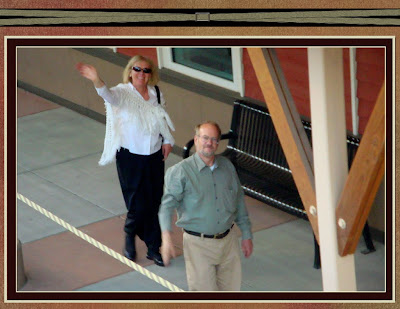 After visiting 5 or so galleries we moved along to Wolf Run Restaurant for dinner. For some reason, I got so tickled with this picture as you can see my hubby turning around to make sure I was still with them.